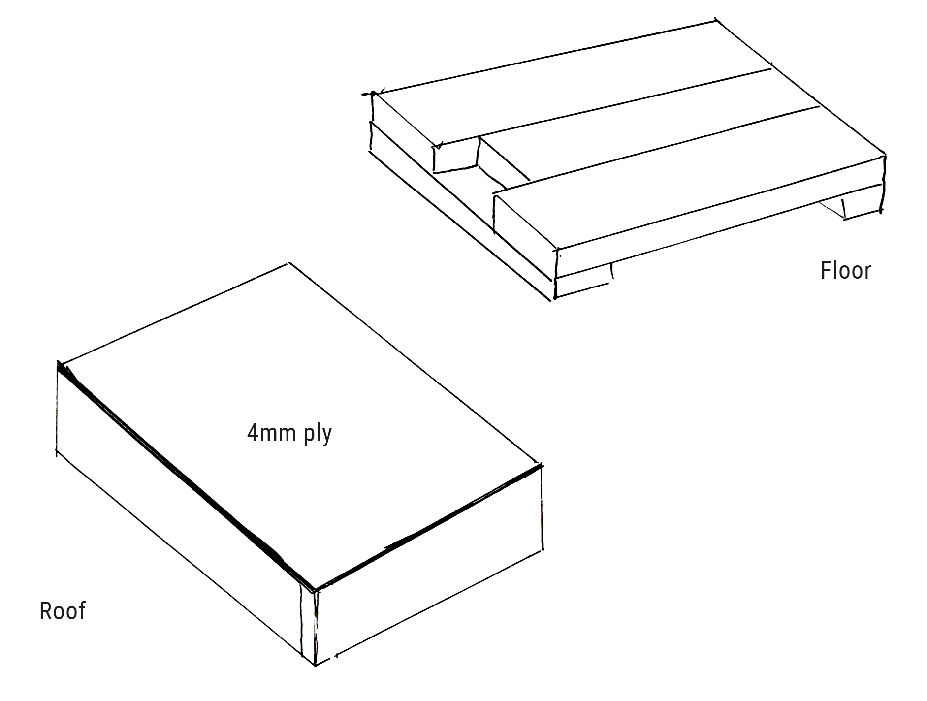 This consists of an open ‘box’ with walls that are made from 3-inch timber and a covering of 4mm ply. It is then covered with rubber roofing membrane or other suitable material